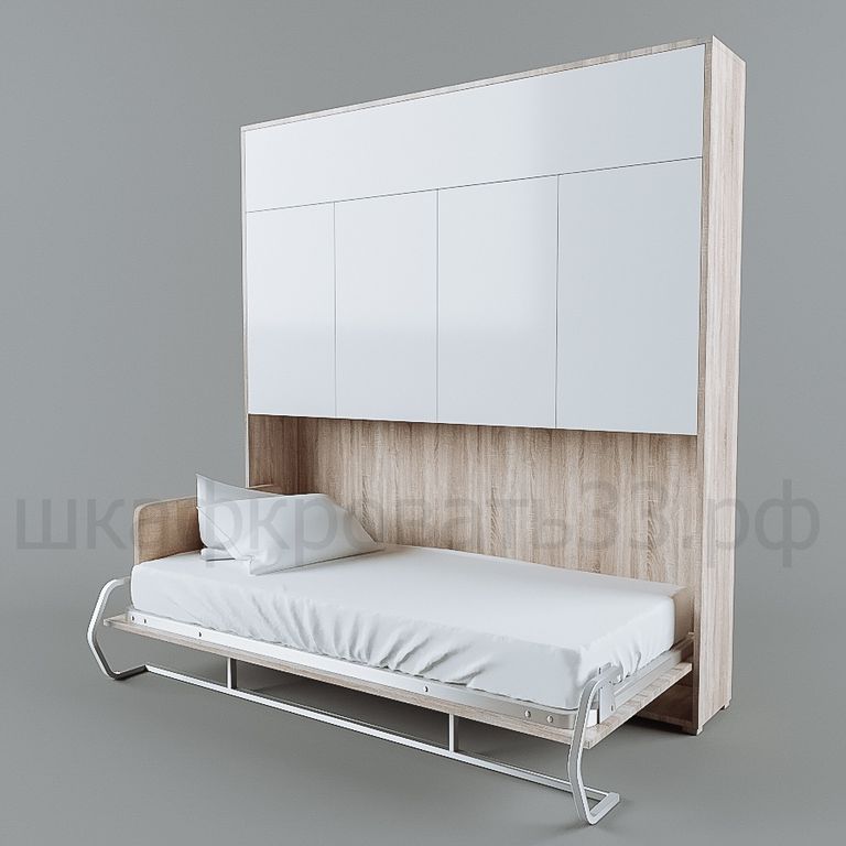 Односпальная шкаф- кровать "Combo" прекрасно подойдет для детской комнаты, она очень практична, надежна, а главное безопасна. Данные качества обеспечиваются за счет защитных кожухов механизма, прочного металлокаркаса, системы против опрокидывания "Push-to-open" и легкого в обращении подъемного механизма. Так же каждая из наших моделей имеет ортопедическое основание и ремни для пристегивания белья.