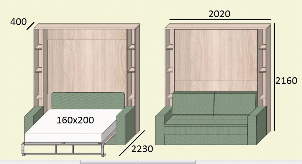 Шкаф-кровать с диваном 3 в 1 160х200