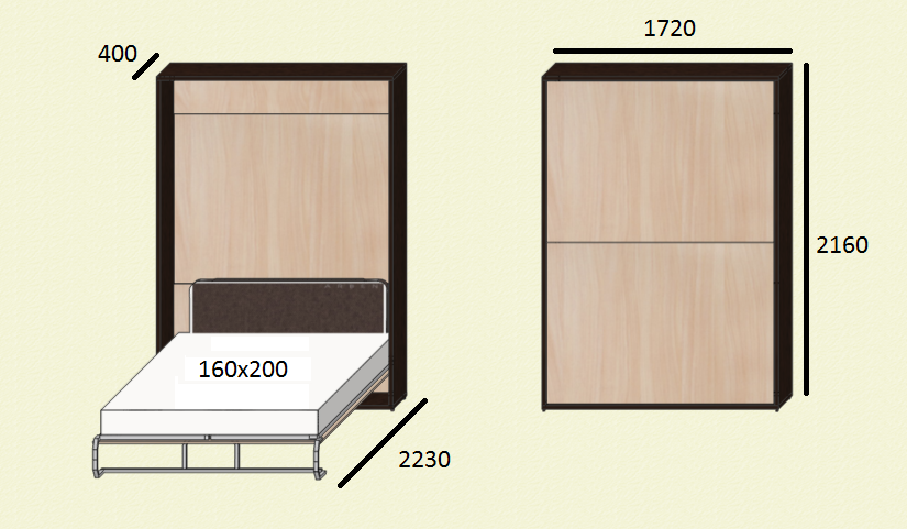 Подъемная кровать-шкаф универсальна, вы сможете подобрать индивидуальную модель, под любой из популярных размеров матраса. Поскольку наша компания сама производит продукцию, на ваш шкаф-кровать цена будет самой оптимальной!